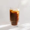 3/ Kết hợp cà phê và sữa: Thêm đá vào cốc để làm lạnh cà phê ngay từ đầu.Đổ cà phê nóng nguyên chất lên trên đá. Đổ sữa nóng béo ngậy lên trên lớp cà phê.